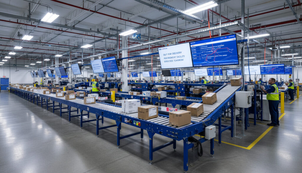 - In Transit to Next Facility: Package moves between processing centers via ground or air transportation.